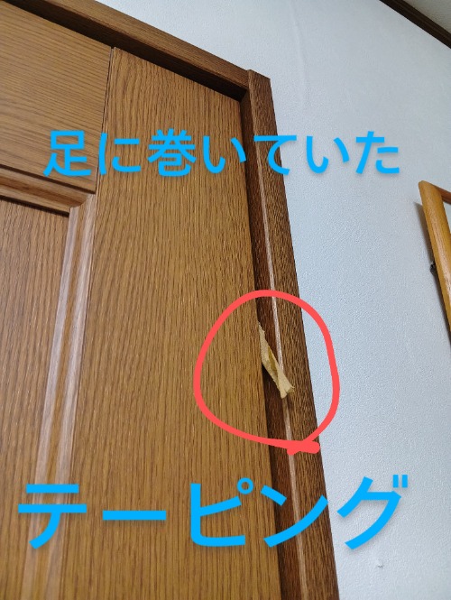 メガネをかけて、よーく見たら私が足に巻いていたテーピングだった(笑)