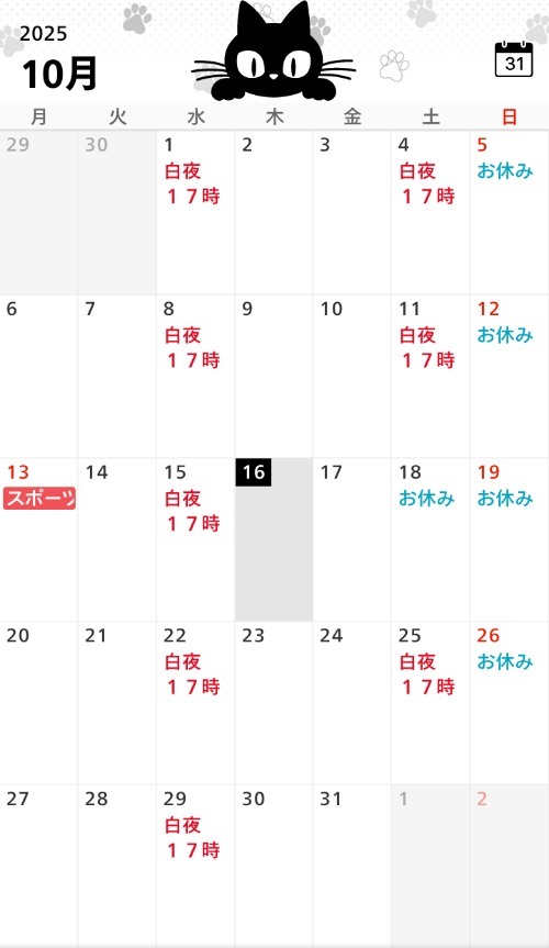17時から出勤予定です。