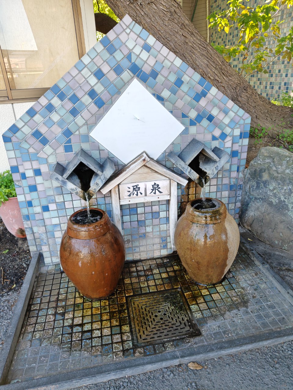 まあでもゆの華も営業するにあたってたぶん衛生基準とかあって保健所?みたいなとこから指導されていて、大浴場にもスタッフが頻繁に水質検査をやりに来てるし、こんな入口の誰にでも手を伸ばせるようなとこにある、それもまだ誰も身体を浸けてない源泉が汚いわけないし、と覚悟を決めた私はゴクゴクしてみました。