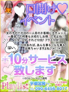 口開け❤イベント開催 その日の一人目のお客様に大チャンス! 一番目って何事も大切だしお得… ですよね、、 10分・10分・されど10分♪ プラス10分! 10分あれば、あんな事もこんな事も 出来ちゃいますよね♪(#^.^#) はい、 +10分サービス 致します! ※60分コース以上適用 ---------------------------------- 栃木県・宇都宮風俗デリヘル 【Playlist-プレイリスト-】 https://u-playlist.com/top.php ---------------------------------- |