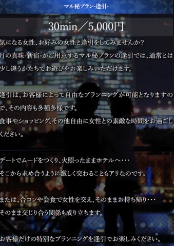 交通手段・受付方法 | 東京(都内全域)・神奈川(川崎、町田、横浜)・埼玉(大宮、西川口、越谷)・千葉(船橋、柏、津田沼)などのホテルや自宅へ派遣・出張・デリバリー。 その他、五反田・品川・目黒・恵比寿の指定場所で路上待ち合わせや、広範囲のお好きな駅で徒歩や車待ち合わせをし、一緒にホテルへチェックインする待ち合わせ型 ※詳しくは『アンダーナビLG見た』と言って、お電話でお問い合わせ下さい。 |