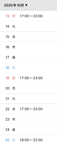 10月の出勤予定です??