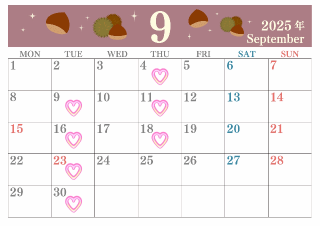 【お知らせ】9月出勤予定