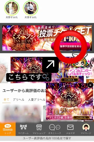 ↓③ 少し下にスクロールして「獲得予定枚数を見る」をタップ